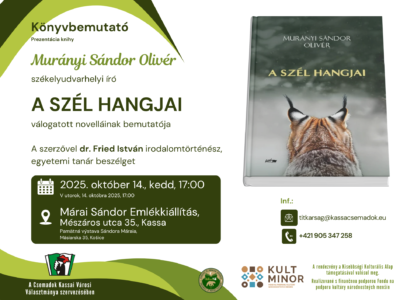 Szeretettel hívjuk Önöket 2025. 10. 14-én, kedden, 17:00 órai kezdettel a Márai Sándor Emlékkiállításba Murányi Sándor Olivér székelyudvarhelyi író, A szél hangjai válogatott novelláinak bemutatójára. A szerzővel dr. Fried István irodalomtörténész beszélget. “Történetek a vadon vadjairól,... Bővebben