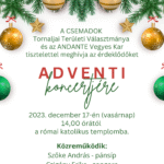 A CSEMADOK Tornaljai Területi Választmánya sok szeretettel meghív mindenkit December 17-én vasárnap 14:00 órától ADVENTI KONCERTRE a római katolikus templomba.