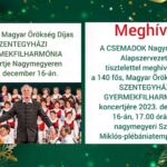 Szeretettel meghívjuk Önt és kedves családját a SZENTEGYHÁZI GYERMEKFILHARMÓNIA ünnepi koncertjére, amely 2023 december 16-án 17:00 órakor valósul meg a nagymegyeri Szent Miklós-plébániatemplomban.