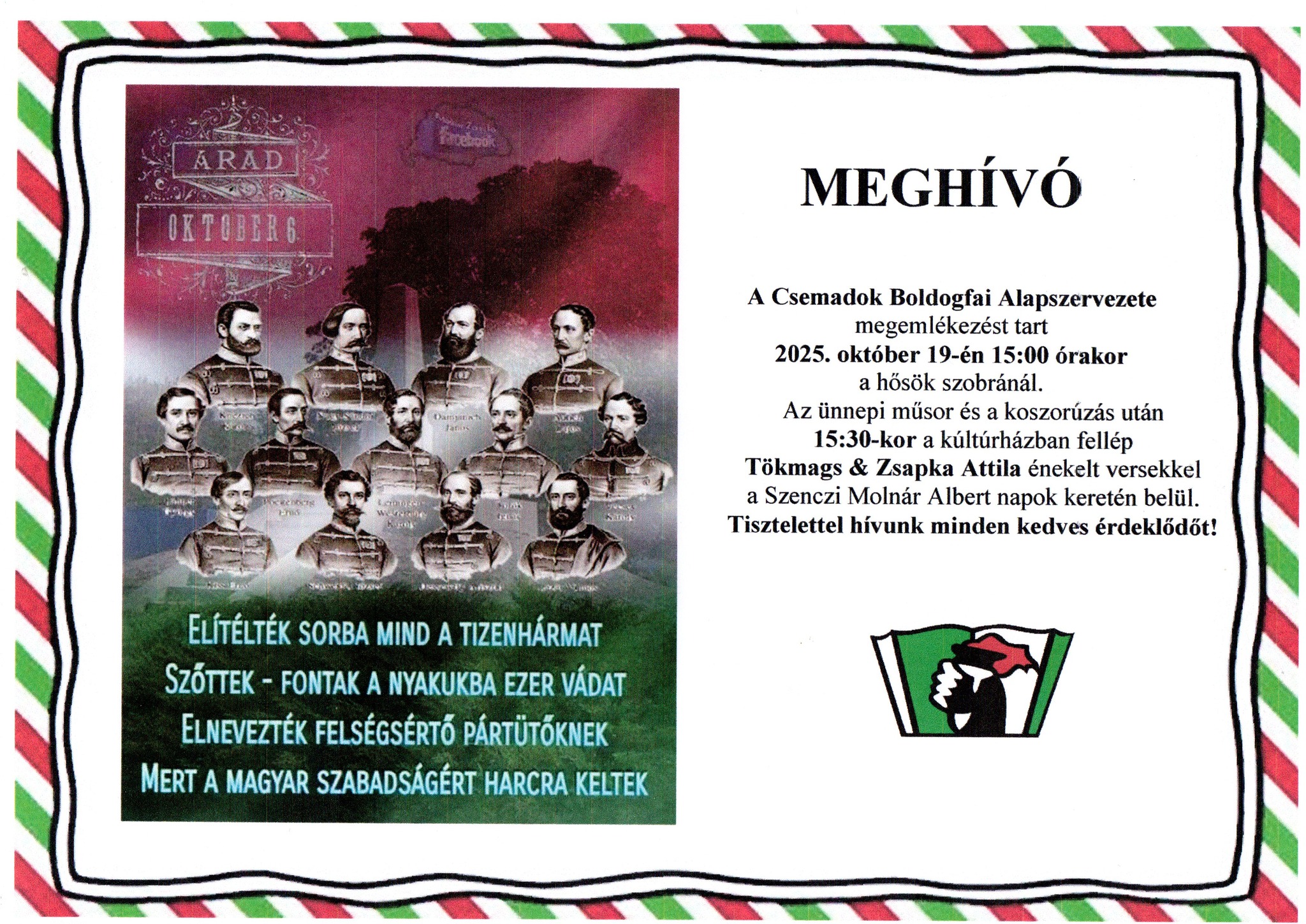 A Csemadok Boldogfai Alapszervezete megemlékezést tart 2025. október 19-én 15:00 órakor a hősök szobránál.