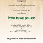 Szeretettel meghívjuk a CSEMADOK alapszervezet évzáró tagsági ülésére, amely 2022.május 15-én (vasárnap) 15,00 órakor lesz megtartva a nagymegyeri Városi művelődési központban.