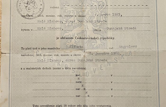 Gáspár Vince és Angyal Erzsébet – Csehszlovák állampolgársági bizonyítvány 1951