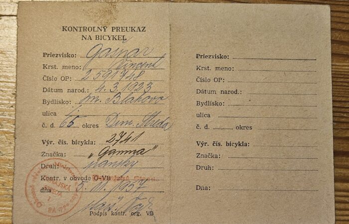 Gáspár Vince kerékpár biztosítási igazolványa 1957