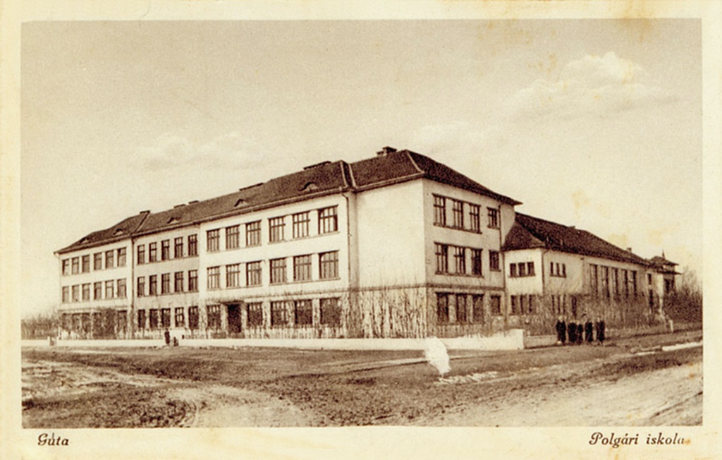Gútának a XX. század elején több, mint ezer iskolaköteles lakosa volt, ennek ellenére a községben 1918-ig mindössze 16 osztályban folyt az oktatás. Az 1921-es nyolc éves iskolakötelességről szóló törvény, a magas népszaporulat és a XIX. században épült fiú- és leányiskola állapota miatt szükségessé vált gútai iskolarendszer fejlesztése. A helyi önkormányzat már 1923-ban kérvényezte egy új polgári iskola megépítését, de – anyagi források hiányában – a tervek elfogadására csak 1925-ben került sor. A döntés legfőbb támogatója Palkovich Viktor, esperes plébános, az iskolaszék elnöke volt. A kétemeletes modern iskolaépület és a hozzá tartozó szolgálati lakások terveit J. Novotný építész készítette el. A község az építés teljes költségét vállalta, melynek fedezetét egy 3 millió koronás kölcsönből biztosította. A kivitelező párkányi Leindörfer vállalat 2,4 millió koronás összeg ellenében vállalta az építési munkálatokat. Az építkezés és a kölcsön törlesztése sem ment zökkenőmentesen. A helyi önkormányzat a község lakosságára rótt pótadók és újabb kölcsönök felvételével tudta csak fizetni a törlesztő részleteket.