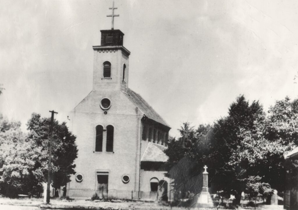 Tóth Alajos plébános, Csókás József gondnok kezdeményezésére és Pavol Cinkovsky elvtárs (akkori HNB elnök) közbenjárásával az illetékes helyeken sikerült elintézni az új templom építéséhez szükséges engedélyeket. A tervrajzok elkészülése után 1957. november 6-án kezdetét vette az építkezés. A Nyitráról érkezett kőművesek és ácsok, minden nap más családnál étkeztek. És minden nap húsz helyi lakos is teljesen ingyen és bérmentve dolgozott az építkezésen. 1959 őszére elkészült a tetőzet és befedték cseréppel. 1960 decemberében rakták le a padlózatot. A hátsó szentély és a hajó a régi templom maradványa. A magasabb oldalhajós rész a román-kori háromhajós bazilikák stílusa alapján készült. 1960 szeptemberében elkészült annak a harangnak a pótléka mely a háborúban teljesen elpusztult. Ideiglenesen ezt egy fából készült haranglábon helyezték el.