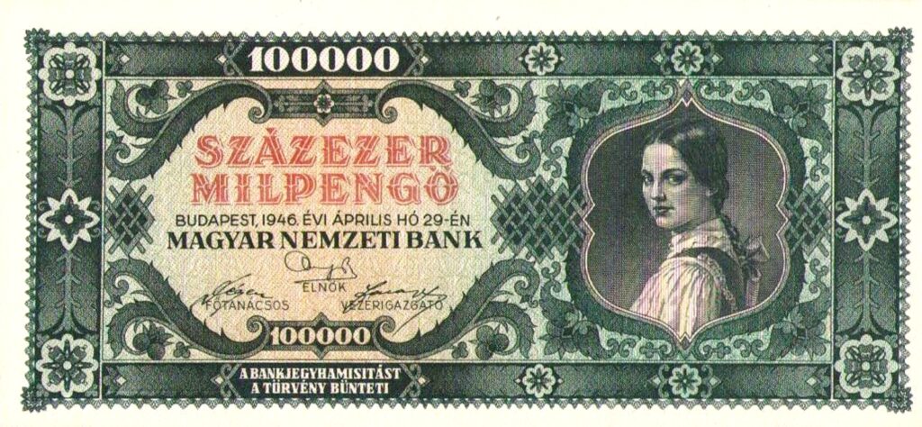 A milpengőre viszont Rudas Valéria, mint nagylány, hajában kifonóval.