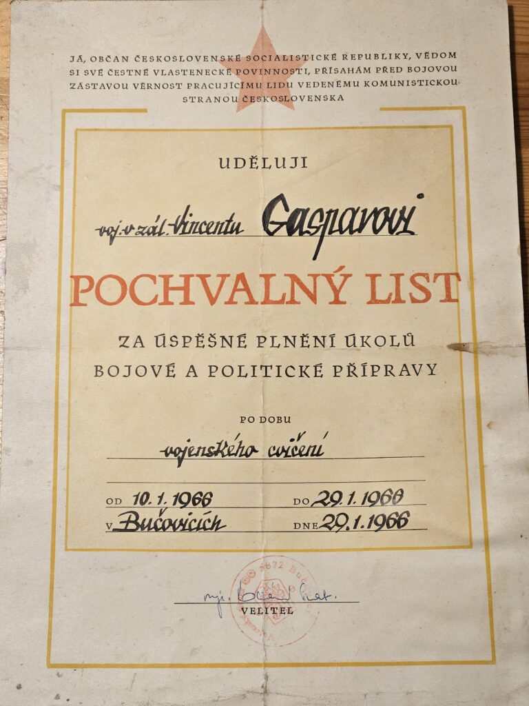 Gáspár Vince – dicsérőlevél 1966