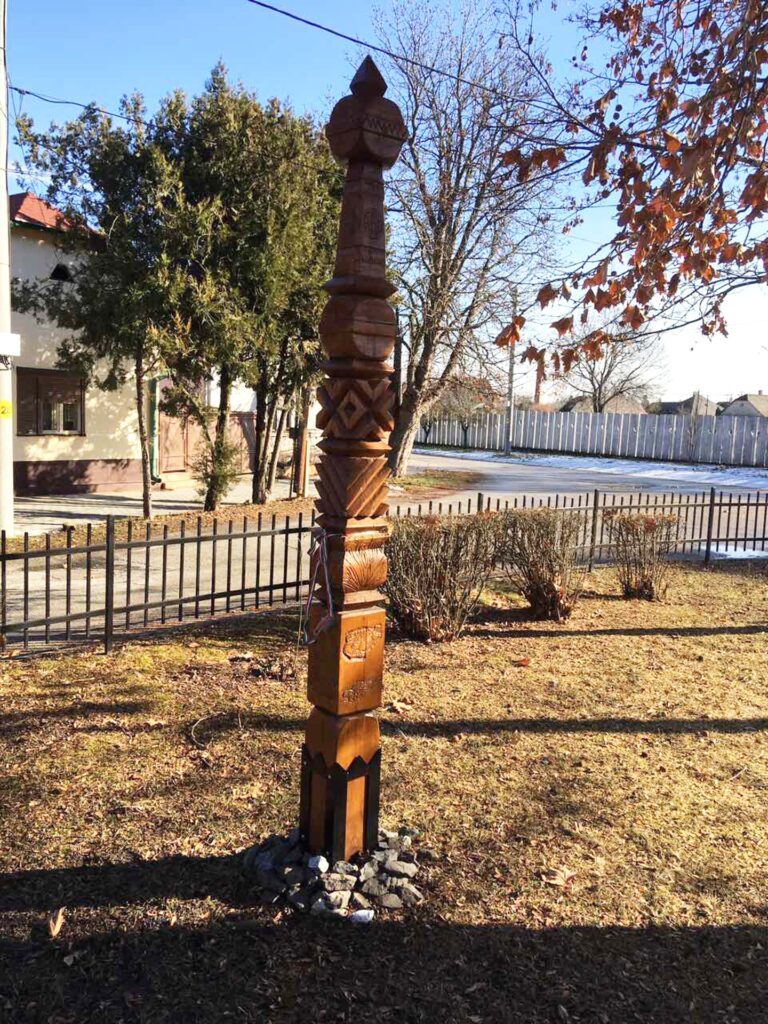 Állította a Csemadok Nagymegyeri Alapszervezete és a 23. számú Arany János cserkészcsapat, 2018. szeptember 8-án, a Szent István emlékparkban. Készítők: Holényi Gergő a cserkeszcsapat parancsnoka és Károlyi Balázs a Csemadok alapszervezetének vezetőségi tagja, valamint Szatmár Tibor kopjafa-faragó.