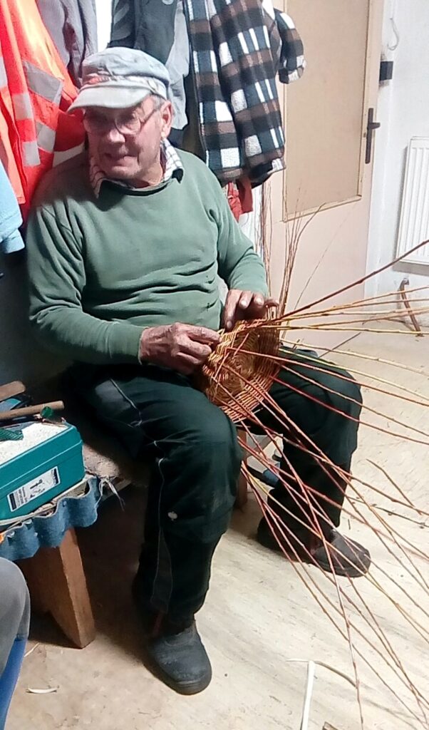 Amikor átmentem Oláh Karcsi bácsihoz és megkérdeztem, hogy feltehetnék-e pár kérdést a mesterségéről nagyon szívesen fogadott, és örömmel beszélt a fonásról. Karcsi bácsi, kosárfonó- és seprűkészítő mester hétéves korában kezdte elsajátítani a mesterséget a nagyapjától. Mutatott pár képet, ahol éppen Németországban van, ugyanis minden évben rendeztek ott egy úgynevezett hagyományőrző vásárt, ahova a szomszédos országokból érkeztek különféle kézműves dologhoz értő emberek, illetve felnőttek és gyerekek egyaránt. Az emberek szívesen odamentek hozzá, hogy elsajátítsák a kosárfonás alapjait, vagy csak, hogy egyszerűen érdeklődjenek róla. Minden évben szívesen ellátogatott a vásárra, és örömmel fogadta az érdeklődőket. Elmesélte, hogy egy kosárfonás hogyan is zajlik: Először is, a kosárhoz való vesszőt november ,illetve december környékén kell szedni, amikor már fagy van. Az a vessző a legjobb, amit ha megcsavarsz, nem jön ki a leve. A vesszőket utána vastagság szerint kiválogatják. A főágak mindig vastagabbak. A kosarat úgy fonják, hogy két szálat kívülről, majd két szálat belülről. A kosarak különböző méretekben és díszítésekkel elkészíthetőek. A legfontosabb eszközök a kés, metszőolló, tömörítő- és gumikalapács. Miközben ezeket mesélte, áradt belőle a szeretet a mestersége iránt. Engem, illetve mindenkit arra bátorít, hogy tanuljuk meg a kosárfonást, ugyanis ma már nagyon kevesen értenek hozzá. A megtanulásához csupán kézügyességre és arra van szükség, hogy szeressük amit csinálunk, ha ezek megvannak, akkor már mehet is a tanulás. Én is szívesen megtanulnám, de nekem sajnos nincs kézügyességem, viszont mindenki mást bátorítok, hogy próbálják meg, mert megéri. Különlegesnek érzem a falunkat, ugyanis a környező településeken se nagyon fordul már elő ez a szakma.