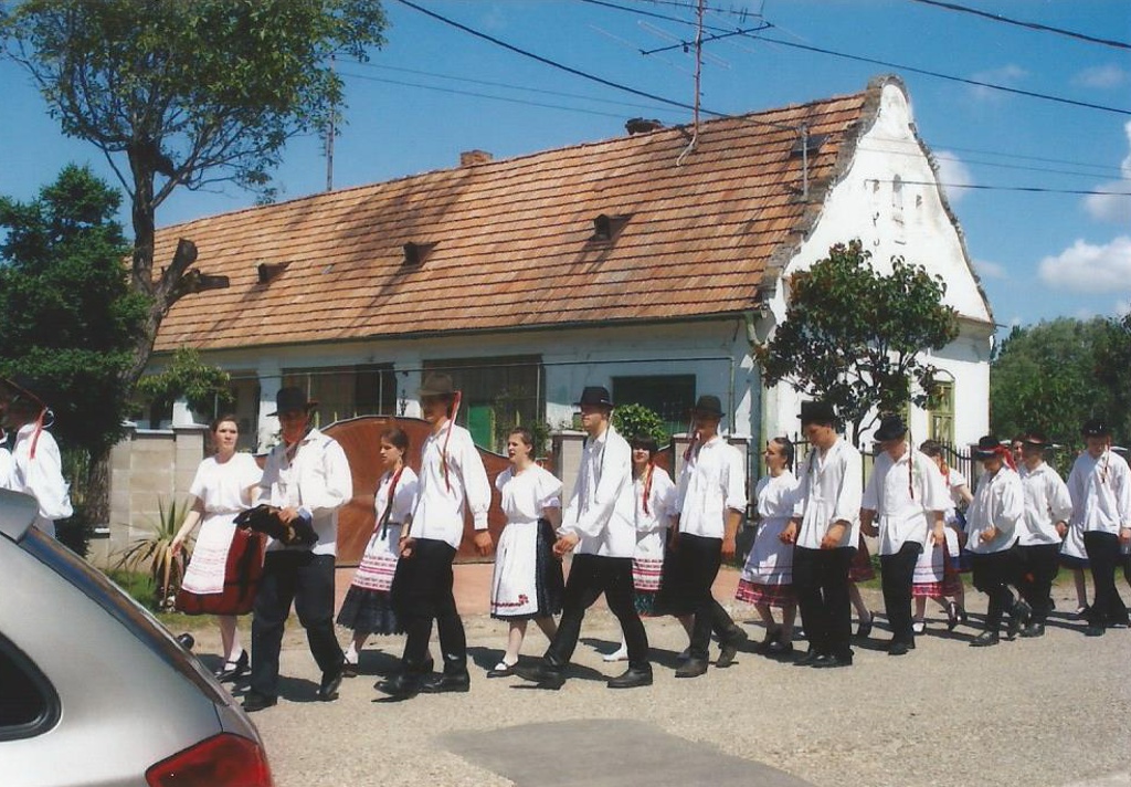 Pünkösd hétfőn ebéd után a vámkeréknél 10-12 népviseletbe öltözött táncospár gyűlt össze, hogy megkezdjék a pünkösdi sortáncjárást. Ez abból állt, hogy a csőszök vezetésével, zenekar kíséretében végigjárták a falu vezetőit: a plébánost, a jegyzőt, a bírót, valamint a módosabb gazdákat és köszöntőt mondtak, illetve meghívták őket a pünkösdi bálba. A vendéglátók borral, pogácsával kínálták a sortáncolókat, majd a legénybíró kezébe szerény pénz adományt nyomtak. Ezt követően a táncosok megtáncoltatták a háziakat is. Ha a csőszök jelt adtak, a menet folytatta útját a következő állomás felé. Út közben a jelentősebb épületek előtt, útkereszteződésekben az oda kilátogató kíváncsiskodóknak is bemutatták az ünnepi táncot.