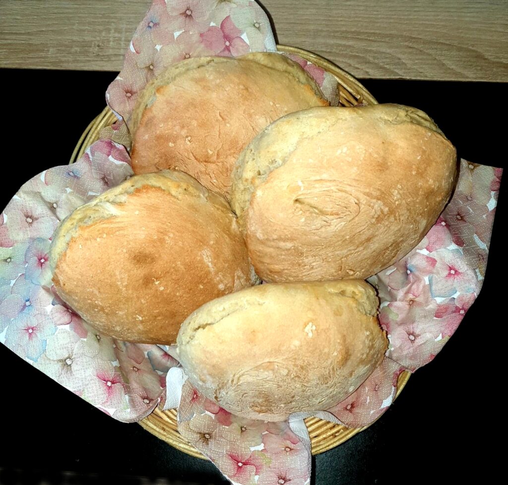 1 kg sima liszt, 1 csomag sütőpor, 2 kávéskanál só, csipet élesztő, 3,5 dcl langyos víz
