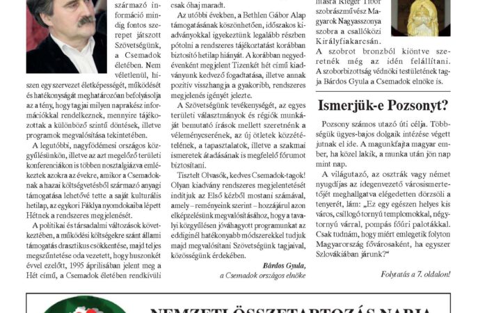 Felelős kiadó: Bárdos Gyula, a Csemadok elnöke Főszerkesztő: Neszméri Tünde Szerkesztők: Bedi Kata, Görföl Jenő Szerzők: Balajti Lajos, Balog Gábor,...