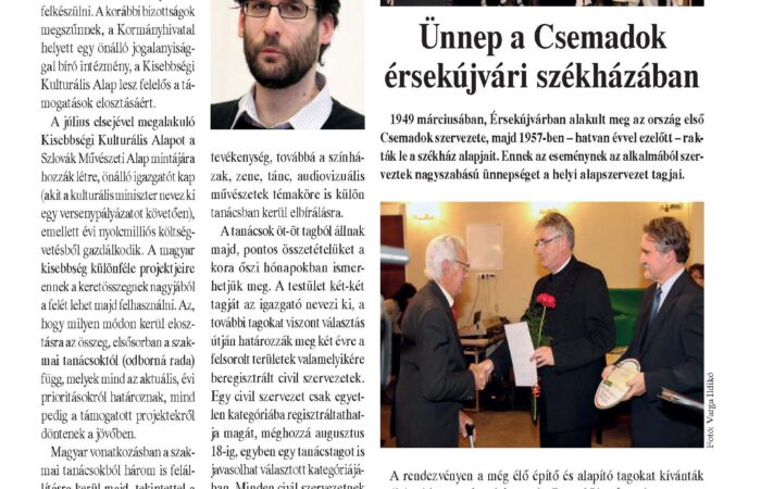 Felelős kiadó: Bárdos Gyula, a Csemadok elnöke Főszerkesztő: Neszméri Tünde Szerkesztők: Bedi Kata, Görföl Jenő Szerzők: Balajti Lajos, Murányi Veronika,...
