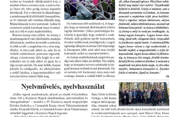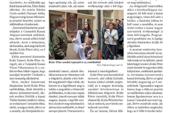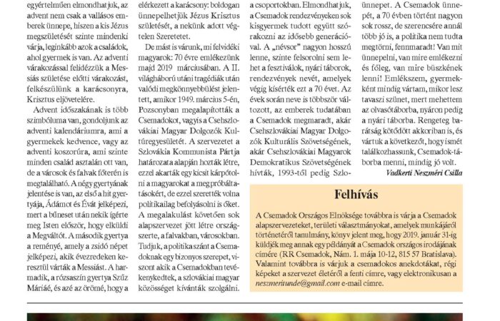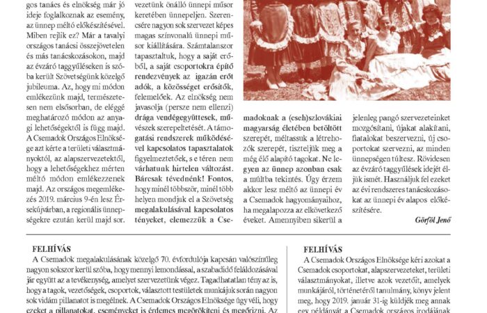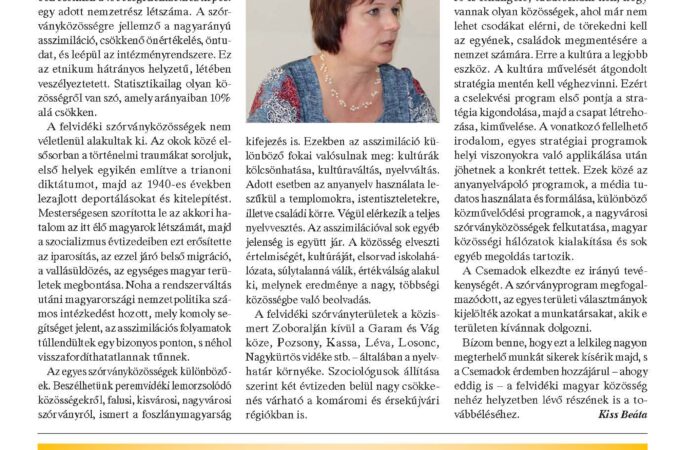 Felelős kiadó: Bárdos Gyula, a Csemadok elnöke Főszerkesztő: Neszméri Tünde Szerkesztők: Bedi Kata, Görföl Jenő Szerzők: Bajzák Viktória, Hadas Katalin,...