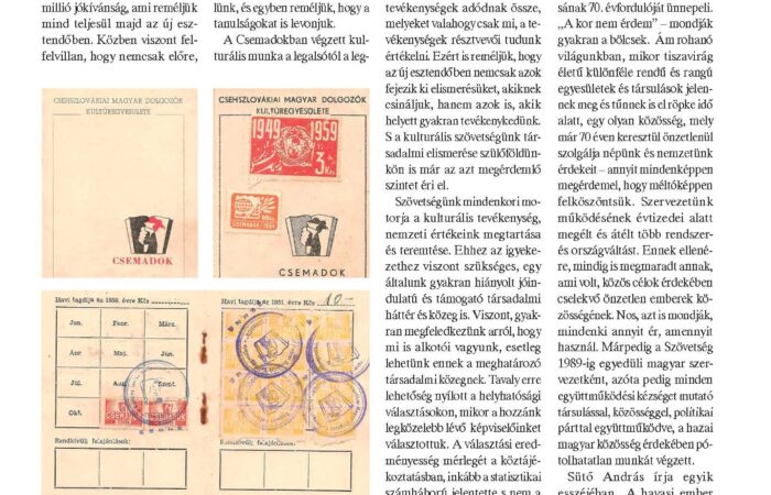 Felelős kiadó: Bárdos Gyula, a Csemadok elnöke Szerkesztők: Bedi Kata, Görföl Jenő, Neszméri Tünde Szerzők: Balogh Gábor, Füzék Erzsébet, Gabri...