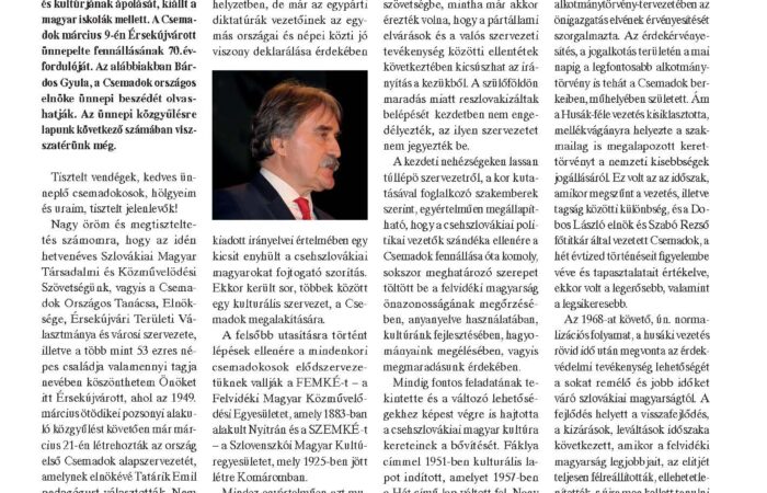 Felelős kiadó: Bárdos Gyula, a Csemadok elnöke Főszerkesztő: Neszméri Tünde Szerkesztők: Bedi Kata, Görföl Jenő Szerzők: Bakos Erzsébet, Duba Ernő,...