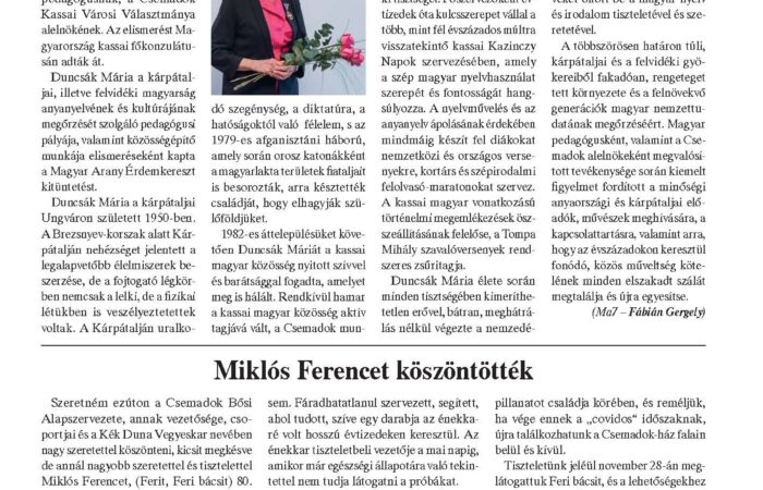 Felelős kiadó: Bárdos Gyula, a Csemadok elnöke Főszerkesztő: Neszméri Tünde Szerkesztők: Bedi Kata, Görföl Jenő Szerzők: Kliment Éva, Mézes Rudolf,...