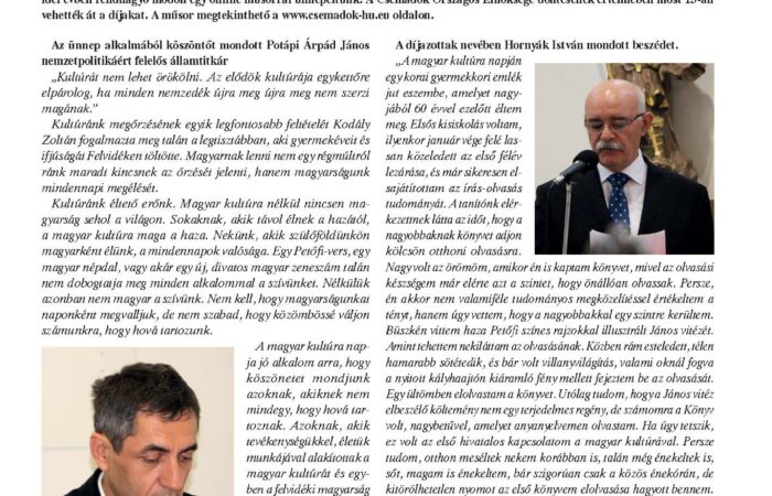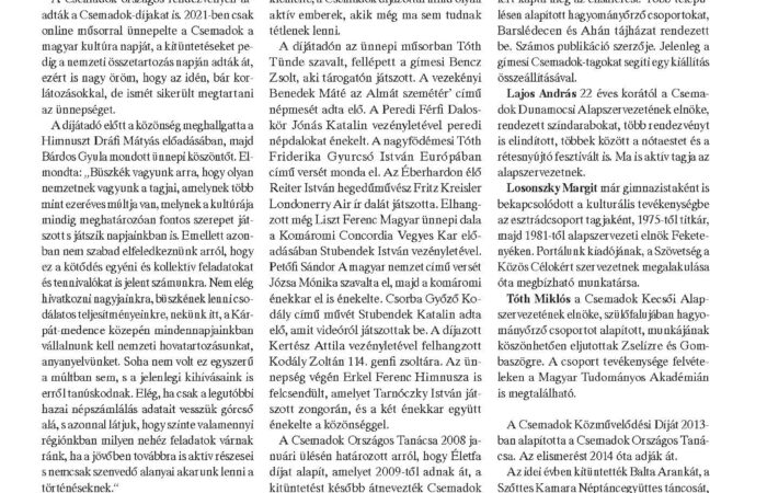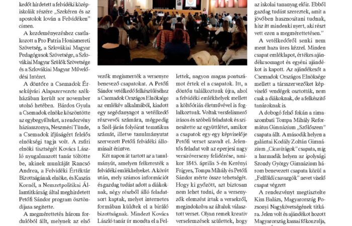 Felelős kiadó: Bárdos Gyula, a Csemadok elnöke Főszerkesztő: Neszméri Tünde Szerkesztők: Bedi Kata, Görföl Jenő Szerzők: Balogh Gábor, Danczi József,...
