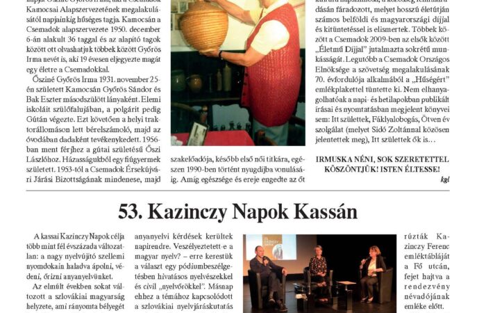Felelős kiadó: Bárdos Gyula, a Csemadok elnöke Főszerkesztő: Neszméri Tünde Szerkesztők: Bedi Kata, Görföl Jenő Szerzők: Balajti Lajos, Gecse Erzsébet,...