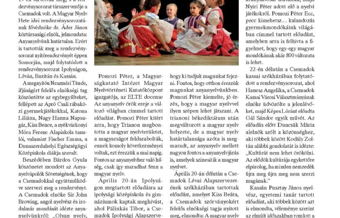 Felelős kiadó: Bárdos Gyula, a Csemadok elnöke Főszerkesztő: Neszméri Tünde Szerkesztők: Görföl Jenő, Takács Ottó Szerzők: Balogh Gábor, Czáboczky Lívia,...