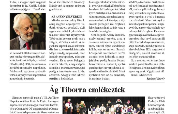 Felelős kiadó: Bárdos Gyula, a Csemadok elnöke Főszerkesztő: Neszméri Tünde Szerkesztők: Görföl Jenő, Takács Ottó Szerzők: Boda Ferenc, Galcsík Károly,...
