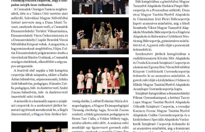 Felelős kiadó: Bárdos Gyula, a Csemadok elnöke Főszerkesztő: Neszméri Tünde Szerkesztők: Görföl Jenő, Takács Ottó Szerzők: Czáboczky Lívia, Csontos Erzsébet,...