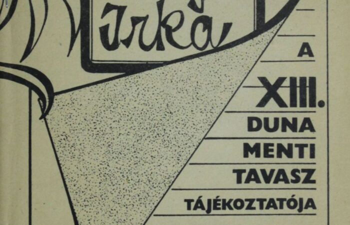 a XIX. Duna Menti Tavasz fesztivállapja Kiadta: NAP Kiadó – Dunaszerdahely, 1994, a Dunaszerdahelyi Regionális Kulturális Központ gondozásában, felelős kiadó...