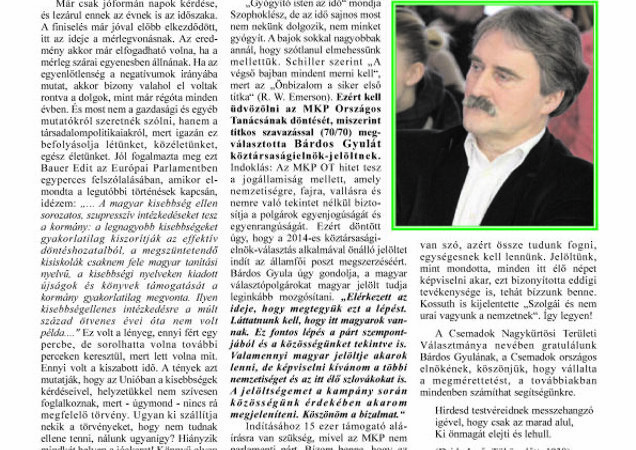 II. évfolyam 12. szám Közéleti havilap. Kiadja a Csemadok Nagykürtösi Területi Választmánya. Nyomda: Pekel Print s.r.o. Bratislava. Terjeszti: a Csemadok...