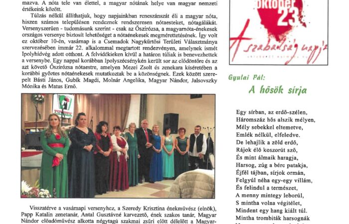 II. évfolyam 11. szám Közéleti havilap. Kiadja a Csemadok Nagykürtösi Területi Választmánya. Nyomda: Pekel Print s.r.o. Bratislava. Terjeszti: a Csemadok...