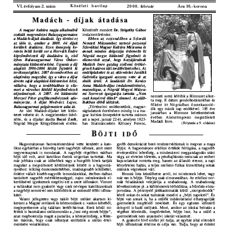 VII. évfolyam 2. szám Közéleti havilap. Kiadja a Csemadok Nagykürtösi Területi Választmánya. Nyomda: NOVAPRESS Veľký Krtíš. Terjeszti: a Csemadok Nagykürtösi...