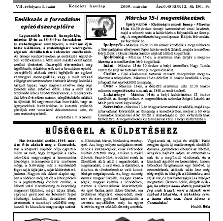 VII. évfolyam 3. szám Közéleti havilap. Kiadja a Csemadok Nagykürtösi Területi Választmánya. Nyomda: NOVAPRESS Veľký Krtíš. Terjeszti: a Csemadok Nagykürtösi...