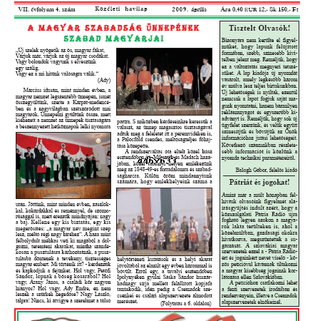 VII. évfolyam 4. szám Közéleti havilap. Kiadja a Csemadok Nagykürtösi Területi Választmánya. Nyomda: NOVAPRESS Veľký Krtíš. Terjeszti: a Csemadok Nagykürtösi...