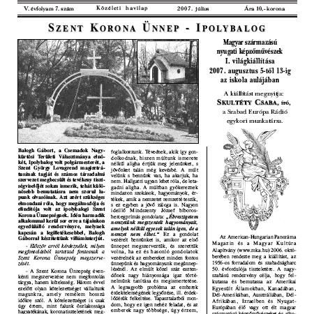 VII. évfolyam 7. szám Közéleti havilap. Kiadja a Csemadok Nagykürtösi Területi Választmánya. Nyomda: NOVAPRESS Veľký Krtíš. Terjeszti: a Csemadok Nagykürtösi...