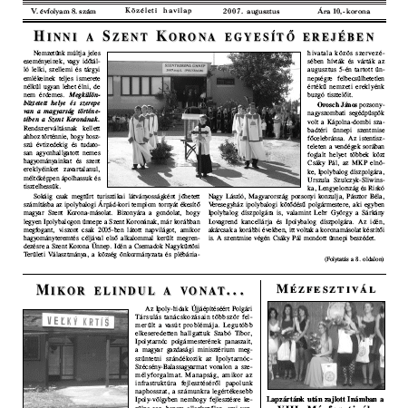VII. évfolyam 8. szám Közéleti havilap. Kiadja a Csemadok Nagykürtösi Területi Választmánya. Nyomda: NOVAPRESS Veľký Krtíš. Terjeszti: a Csemadok Nagykürtösi...