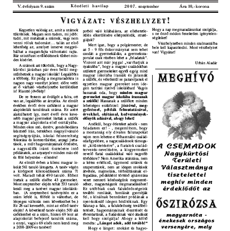 V. évfolyam 9. szám Közéleti havilap. Kiadja a Csemadok Nagykürtösi Területi Választmánya. Nyomda: NOVAPRESS Veľký Krtíš. Terjeszti: a Csemadok Nagykürtösi...
