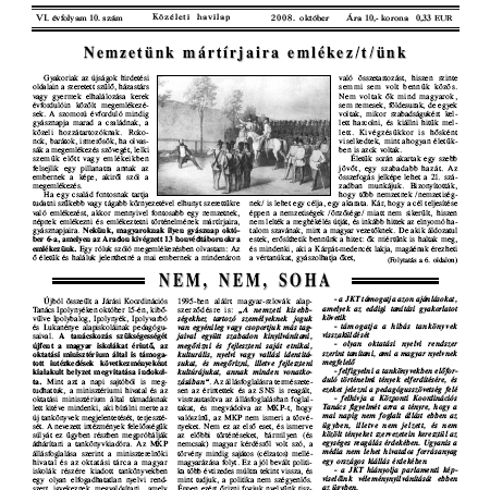 VI. évfolyam 10. szám Közéleti havilap. Kiadja a Csemadok Nagykürtösi Területi Választmánya. Nyomda: NOVAPRESS Veľký Krtíš. Terjeszti: a Csemadok Nagykürtösi...