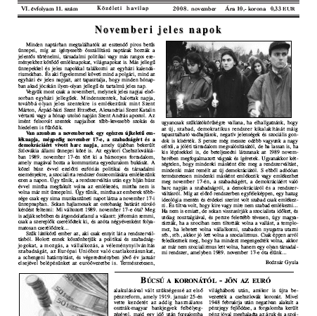 VI. évfolyam 11. szám Közéleti havilap. Kiadja a Csemadok Nagykürtösi Területi Választmánya. Nyomda: NOVAPRESS Veľký Krtíš. Terjeszti: a Csemadok Nagykürtösi...