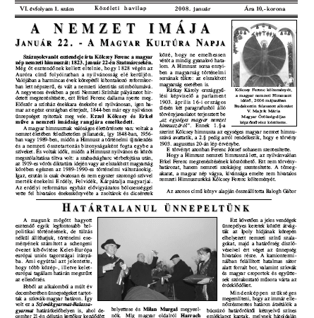 VI. évfolyam 1. szám Közéleti havilap. Kiadja a Csemadok Nagykürtösi Területi Választmánya. Nyomda: NOVAPRESS Veľký Krtíš. Terjeszti: a Csemadok Nagykürtösi...