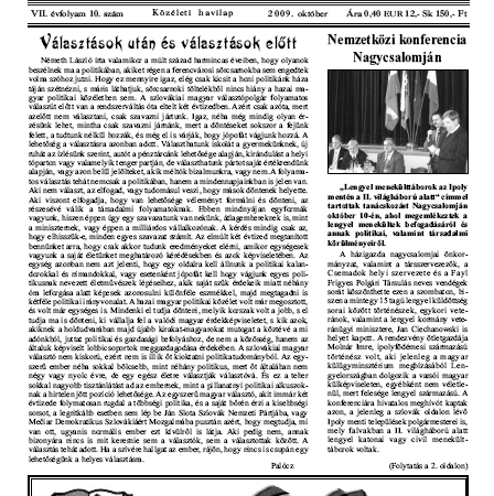 VI. évfolyam 9. szám Közéleti havilap. Kiadja a Csemadok Nagykürtösi Területi Választmánya. Nyomda: NOVAPRESS Veľký Krtíš. Terjeszti: a Csemadok Nagykürtösi...