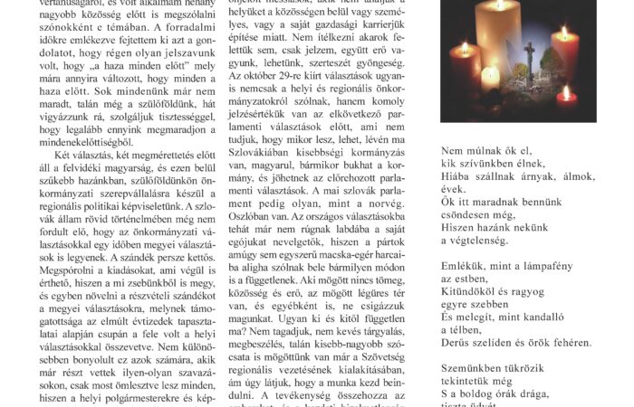 XX. évfolyam 11. szám Közéleti havi lap 2022. november Közéleti havilap. Kiadja a Csemadok Nagykürtösi Területi Választmánya. A kiadásért felel...