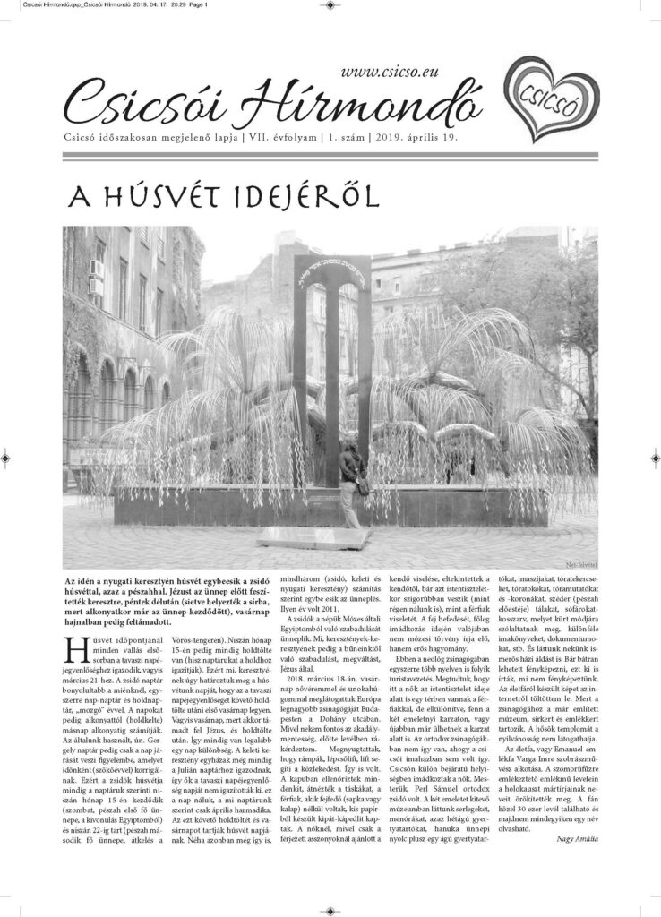 Csicsó időszakosan megjelenő lapja | VII. évfolyam | 1. szám | 2019. április 19.