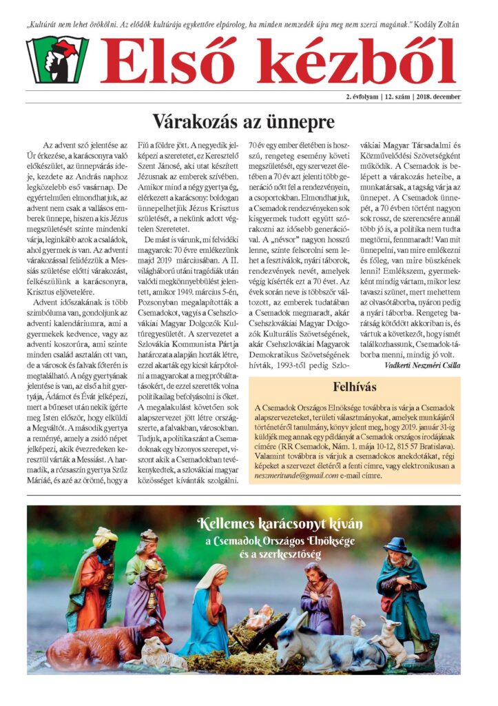 Kiadja: Szlovákiai Magyar Társadalmi és Közművelődési Szövetség – Csemadok, 815 57 Bratislava – Pozsony, Nám. 1. mája 10-12. www.csemfeszt.sk, www.csemadok-hu.eu | Nyomda: Palatia Nyomda és Kiadó Kft., Győr