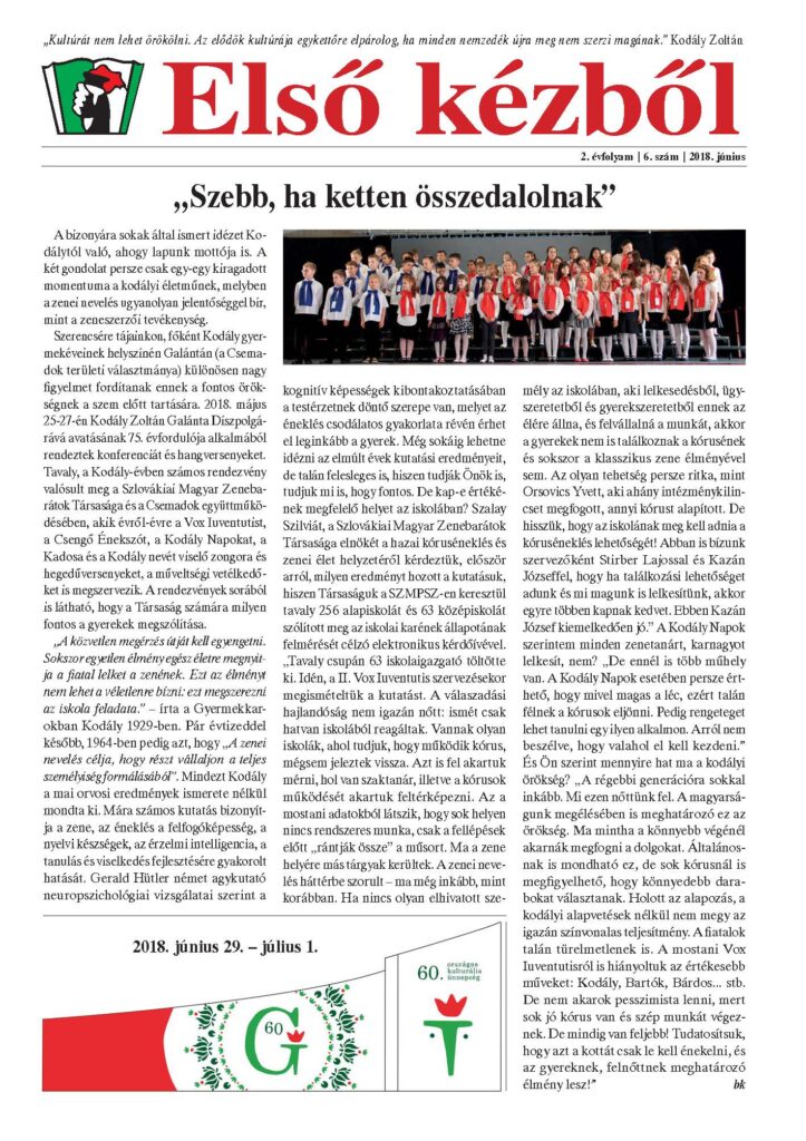 Kiadja: Szlovákiai Magyar Társadalmi és Közművelődési Szövetség – Csemadok, 815 57 Bratislava – Pozsony, Nám. 1. mája 10-12. | Nyomda: Palatia Nyomda és Kiadó Kft., Győr