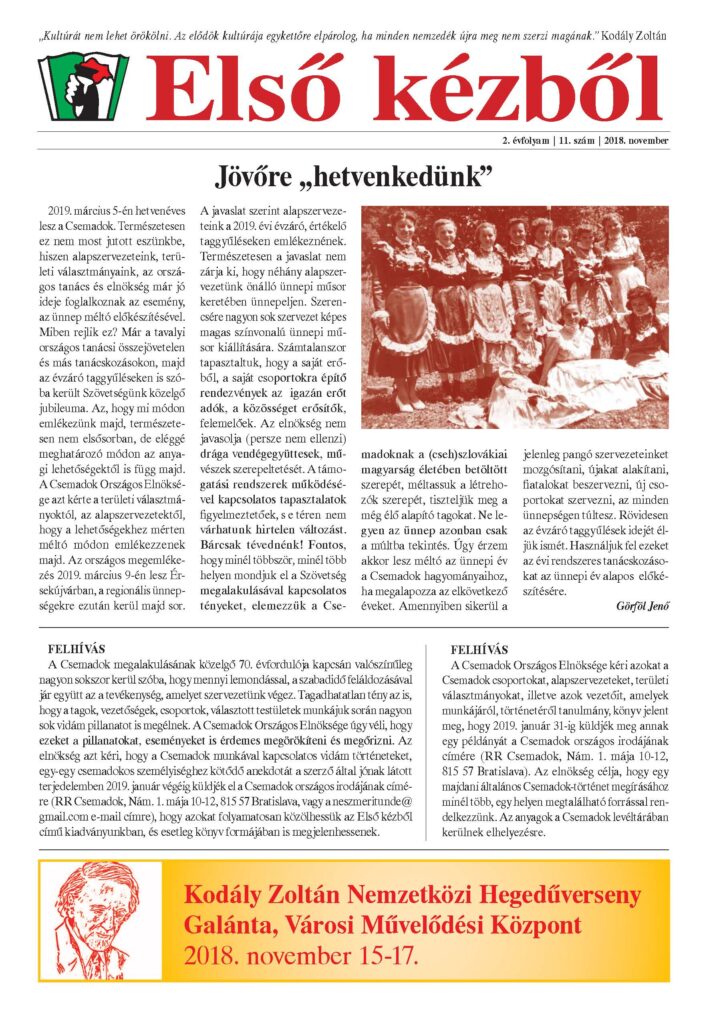 Kiadja: Szlovákiai Magyar Társadalmi és Közművelődési Szövetség – Csemadok, 815 57 Bratislava – Pozsony, Nám. 1. mája 10-12. www.csemfeszt.sk, www.csemadok-hu.eu | Nyomda: Palatia Nyomda és Kiadó Kft., Győr
