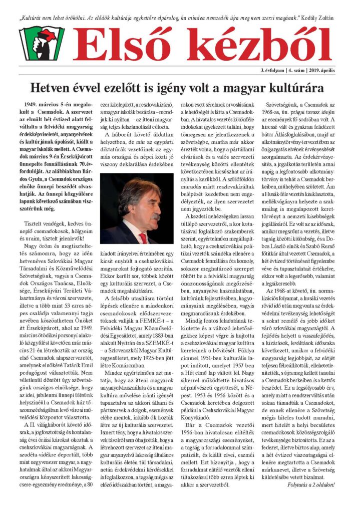 Felelős kiadó: Bárdos Gyula, a Csemadok elnöke