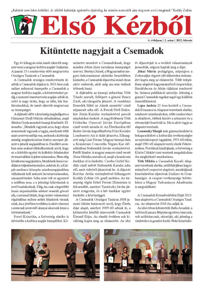 Kiadja: Szlovákiai Magyar Társadalmi és Közművelődési Szövetség – Csemadok, 815 57 Bratislava – Pozsony, Nám. 1. mája 10-12. www.csemfeszt.sk, www.csemadok-hu.eu | Nyomda: Palatia Nyomda és Kiadó Kft., Győ