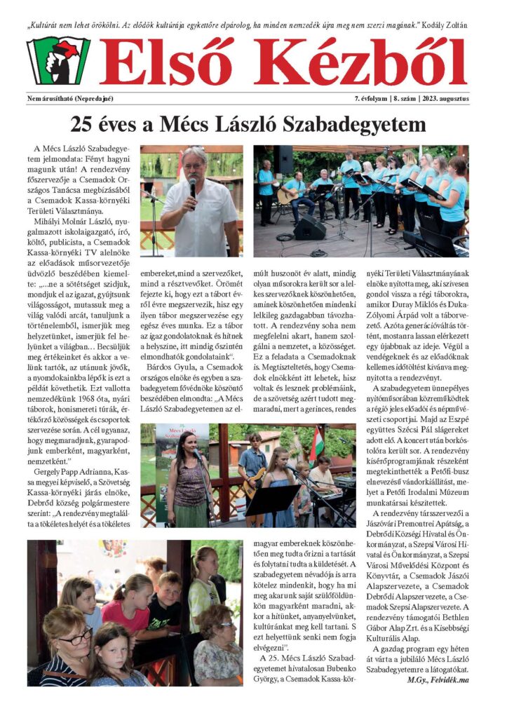 Első kézből – 2023. augusztus (7. évfolyam – 8. szám)