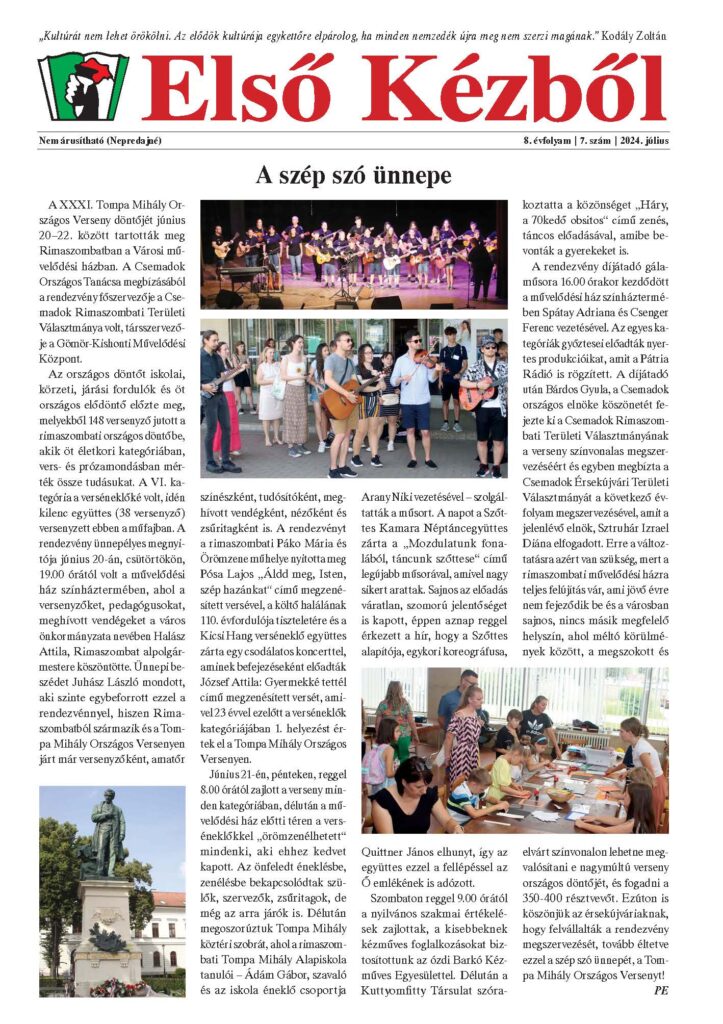 Első kézből – 2024. július (8. évfolyam – 7. szám)
