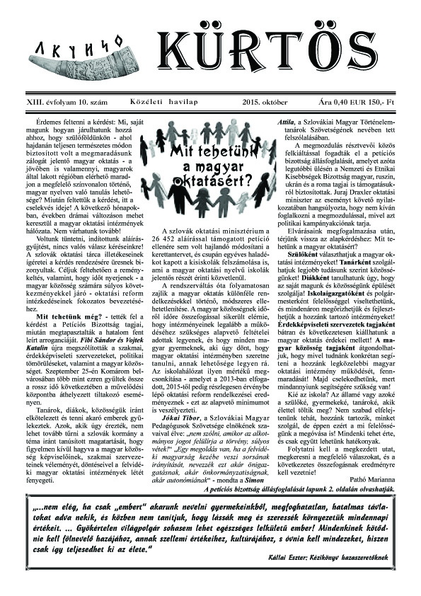 Közéleti havilap. Kiadja a Csemadok Nagykürtösi Területi Választmánya. Nyomda: Csemadok OV Veľký Krtíš. Terjeszti: a Csemadok Nagykürtösi Területi Választmánya. Ára 12.- korona, 0,40 EUR