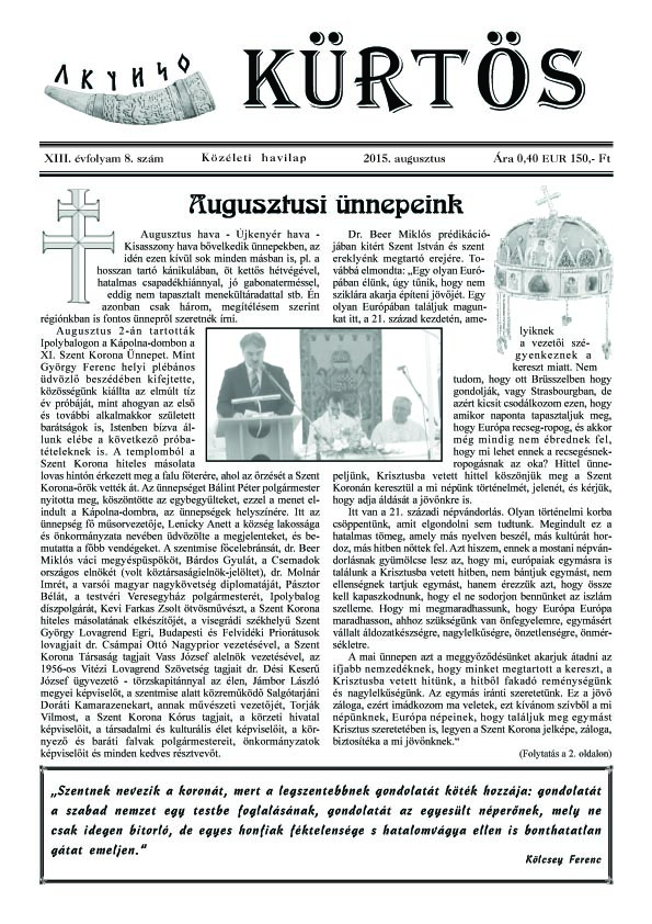 Közéleti havilap. Kiadja a Csemadok Nagykürtösi Területi Választmánya. Nyomda: Csemadok OV Veľký Krtíš. Terjeszti: a Csemadok Nagykürtösi Területi Választmánya. Ára 12.- korona, 0,40 EUR